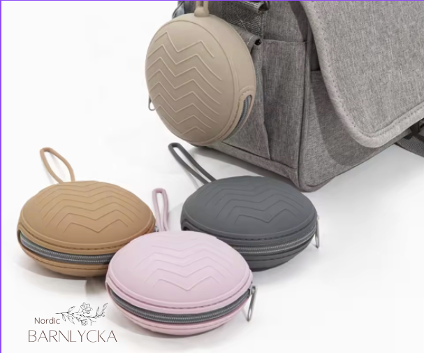 Vår praktiska och stiliga napphållare är det perfekta tillbehöret för föräldrar som vill hålla sina barns nappar rena och lättåtkomliga. Tillverkad av högkvalitativ, BPA-fri silikon, erbjuder denna napphållare en säker och hygienisk lösning för att förvara nappar när de inte används.